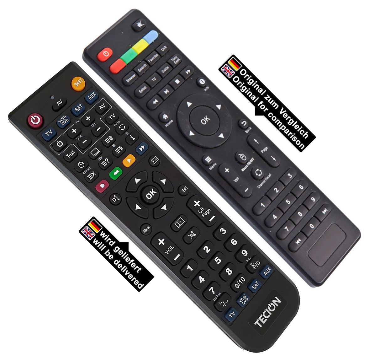 Die Tecion Fernbedienung wird vor dem Versand für Sie vorprogrammiert und anschließend auf Funktion überprüft. Alle Tasten der originalen Fernbedienung wurden ausgelesen, um auf die Tecion Fernbedienung übertragen werden zu können. Beim Batteriewechsel gehen die Funktionen nicht verloren und versehentlich können diese auch nicht verändert oder gelöscht werden. Ein Tastenbelegungsplan liegt einer jeden Bestellung anbei.