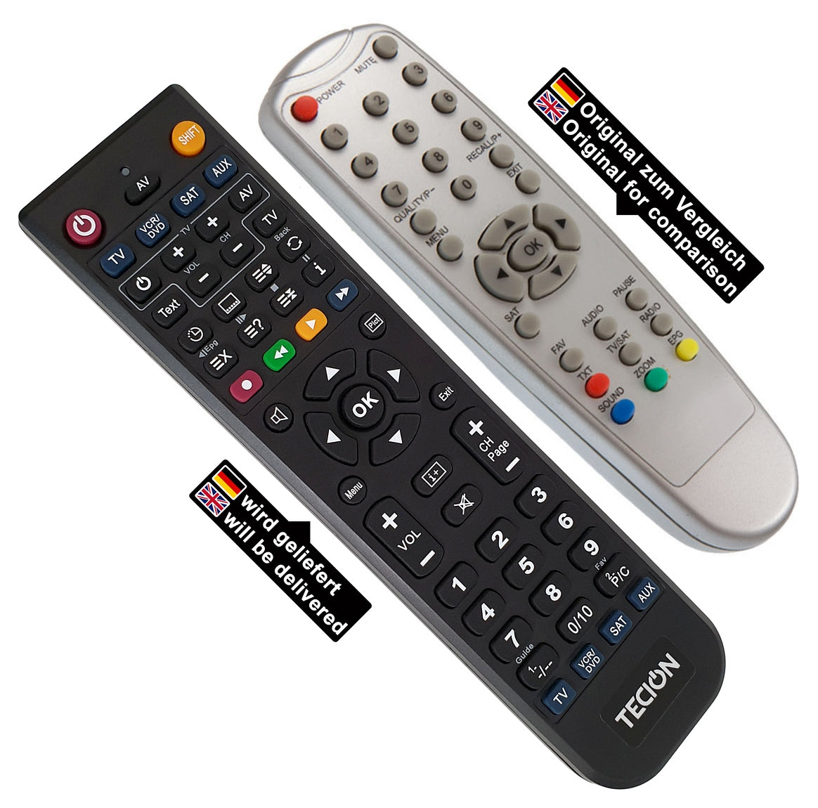 Die Tecion Fernbedienung wird vor dem Versand für Sie vorprogrammiert und anschließend auf Funktion überprüft. Alle Tasten der originalen Fernbedienung wurden ausgelesen, um auf die Tecion Fernbedienung übertragen werden zu können. Beim Batteriewechsel gehen die Funktionen nicht verloren und versehentlich können diese auch nicht verändert oder gelöscht werden. Ein Tastenbelegungsplan liegt einer jeden Bestellung anbei.
