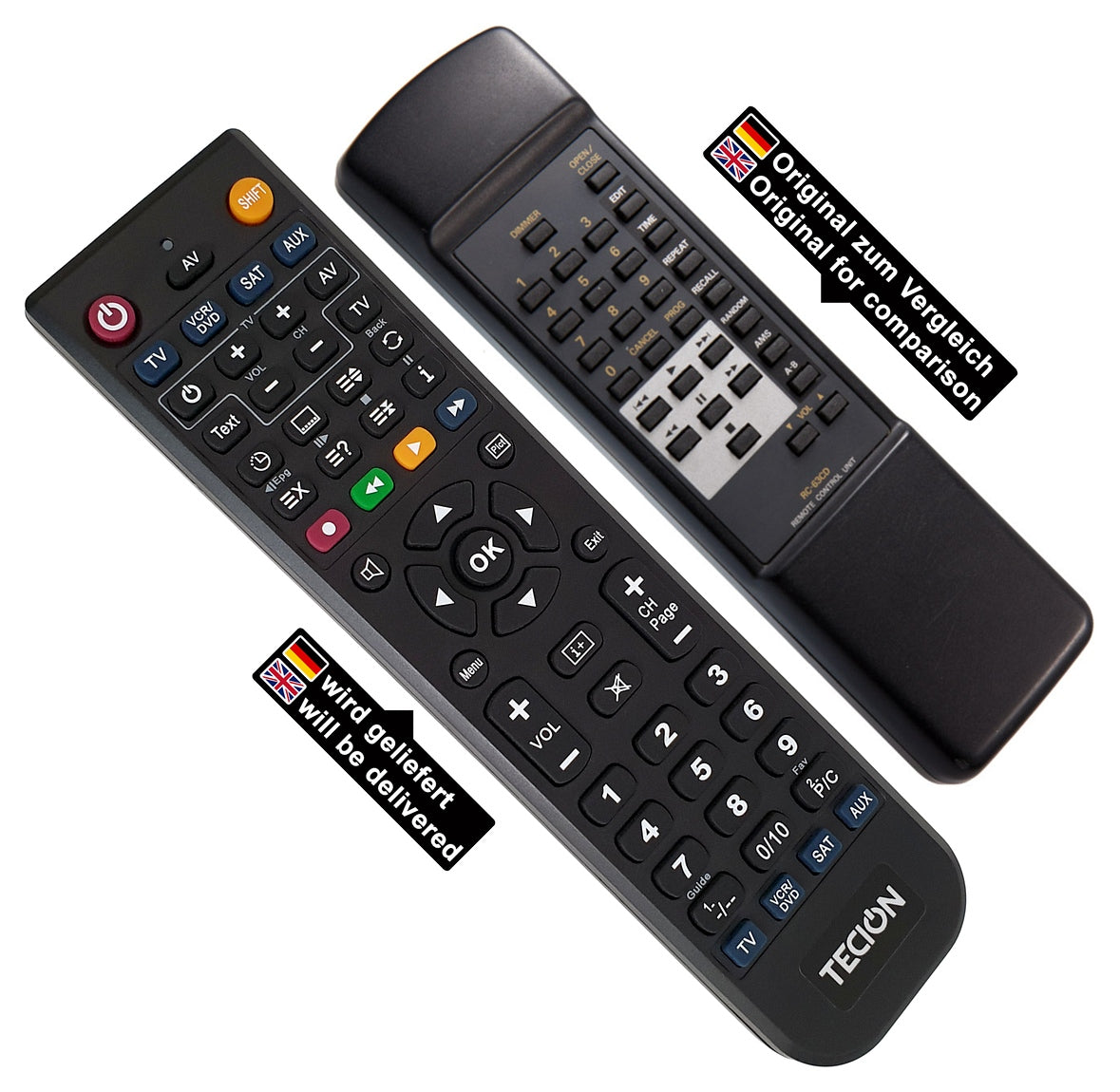 Die Tecion Fernbedienung wird vor dem Versand für Sie vorprogrammiert und anschließend auf Funktion überprüft. Alle Tasten der originalen Fernbedienung wurden ausgelesen, um auf die Tecion Fernbedienung übertragen werden zu können. Beim Batteriewechsel gehen die Funktionen nicht verloren und versehentlich können diese auch nicht verändert oder gelöscht werden. Ein Tastenbelegungsplan liegt einer jeden Bestellung anbei.