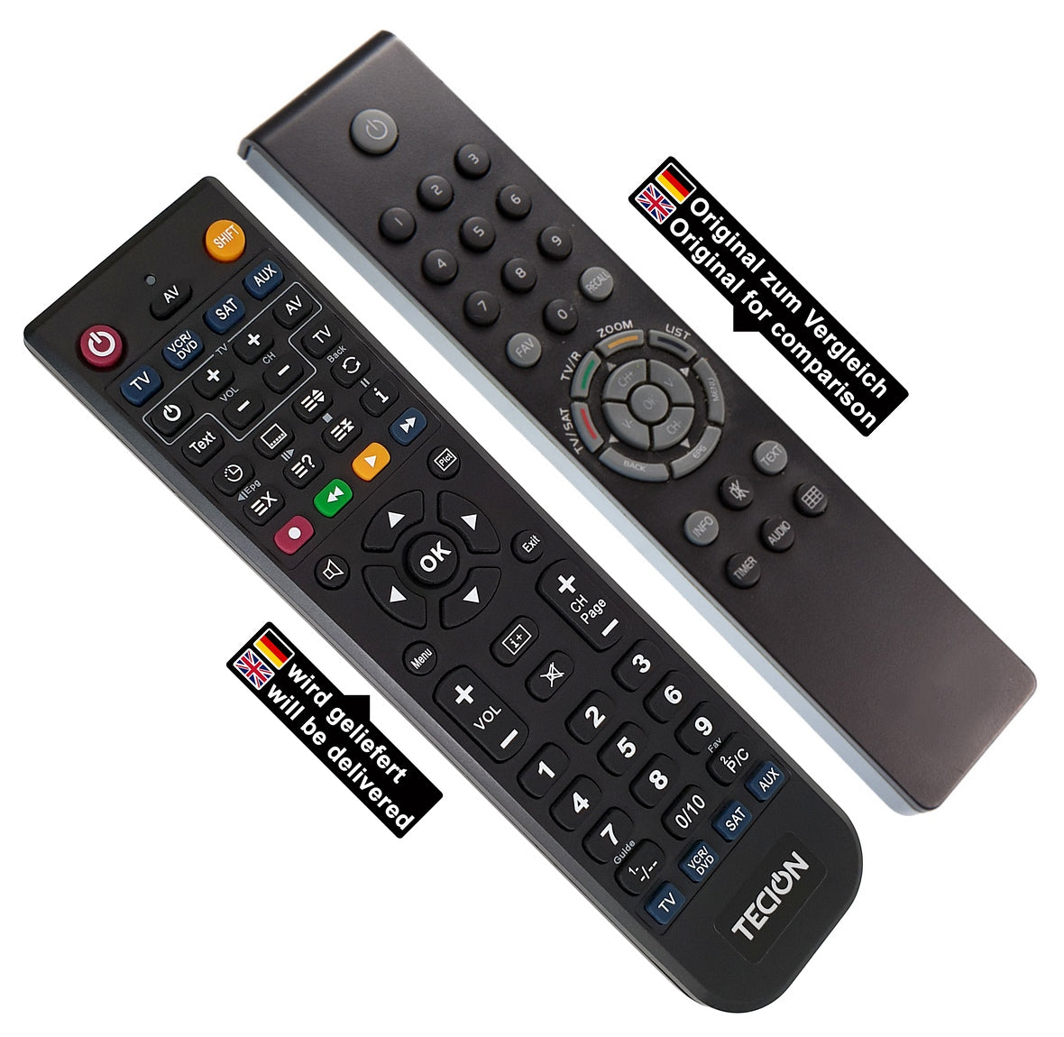 Die Tecion Fernbedienung wird vor dem Versand für Sie vorprogrammiert und anschließend auf Funktion überprüft. Alle Tasten der originalen Fernbedienung wurden ausgelesen, um auf die Tecion Fernbedienung übertragen werden zu können. Beim Batteriewechsel gehen die Funktionen nicht verloren und versehentlich können diese auch nicht verändert oder gelöscht werden. Ein Tastenbelegungsplan liegt einer jeden Bestellung anbei.